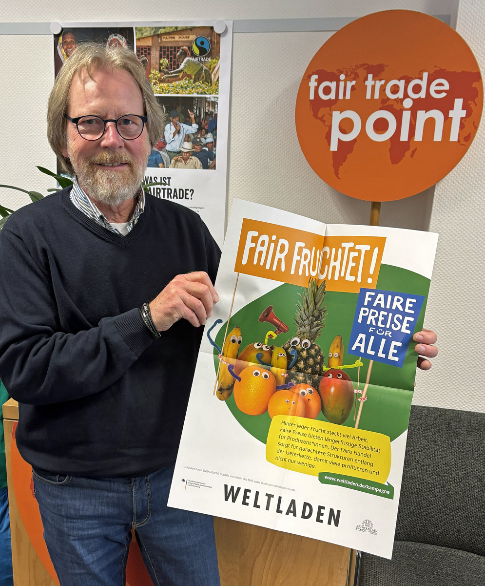 Mit dem außergewöhnlichen Motto „Fair fruchtet“ nimmt der diesjährige Weltladentag, der zusammen mit dem Internationalen Tag des Fairen Handels immer am zweiten Samstag im Mai stattfindet, verschiedene Früchte in den Blick. Sie stehen für Vielfalt, Genuss und Lebensfreude. Bananen, Orangen, Ananas und Mangos gehören weltweit zu den beliebtesten Früchten. Doch hinter dem, was bei uns wie selbstverständlich im Einkaufskorb landet, stecken schwierige Arbeitsbedingungen, insbesondere bei den Produzentinnen und Produzenten.